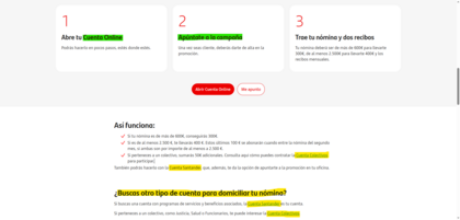 Me extraña que ponga cuenta ONLINE en la pagina de la cuenta NOMINA. Como veis las condiciones son distintas. Son mas nuevas de la cuenta ONLINE. Estoy hecho un lio...