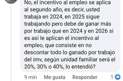 De esos 5030€ de ingresos conforme a IRPF 2024 menos los cero euros de ingresos en IRPF 2023 que indicas, el 60% de tu renta garantizada (que si eres tú solo, hablamos de 4743,43€) más el 20% del exceso (5030€ - 4743,43€ = 286,57 que su 20% son 57,31€) sería tu máximo incentivo al empleo que te podrían hacer, que son 4800,74€, ergo tu IMV serian 7905.72 menos 5030 más 4800,74 igual a 7676,46€ anuales de IMV que son 639,70€ mensuales.