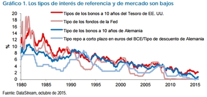La economía mundial ha sufrido un incremento inusualmente lento después de la crisis, esto es debido en gran parte a los bajos tipos de interés que se dan en las grandes economías, tanto los tipos de referencia de los bancos centrales como los rendimientos de los mercados de bonos, y tanto en términos nominales como reales.